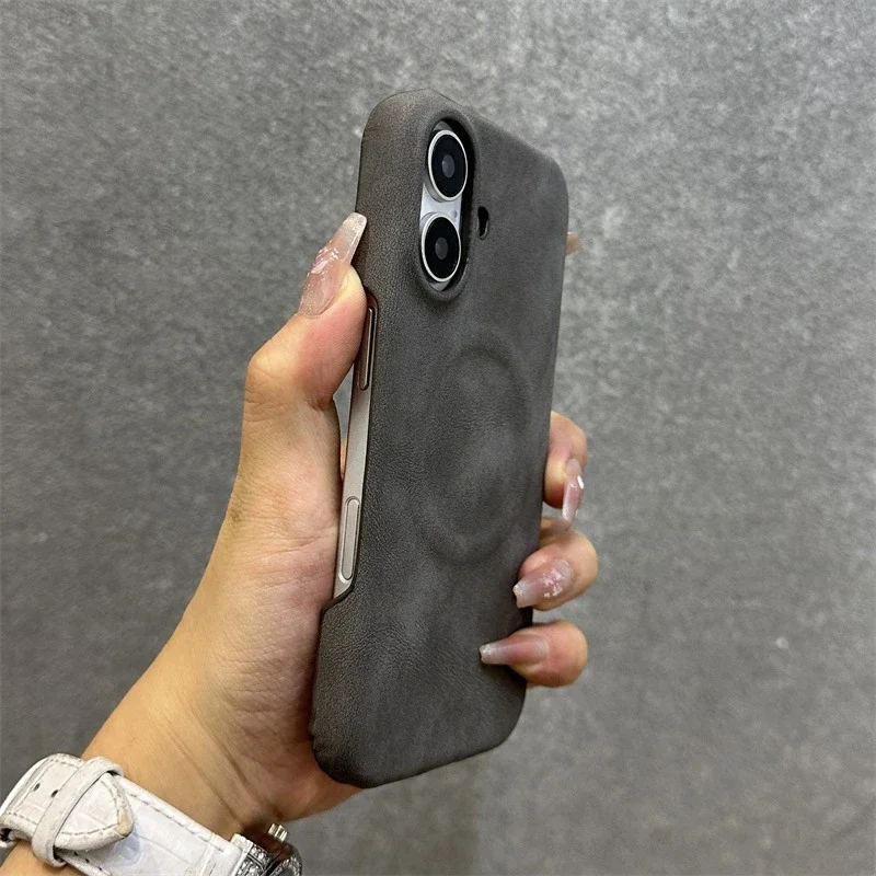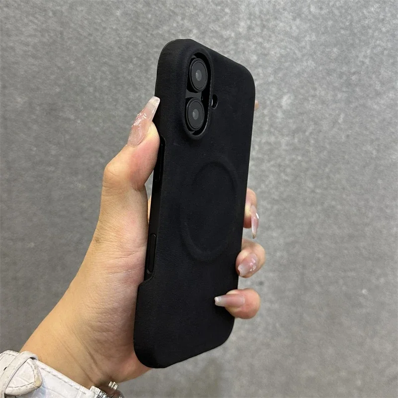 Business Leather Pattern for Magsafe Wireless Charging Phone Case for iPhone 16 15 14 Plus 13 12 Pro Max Shockproof Bumper Cover