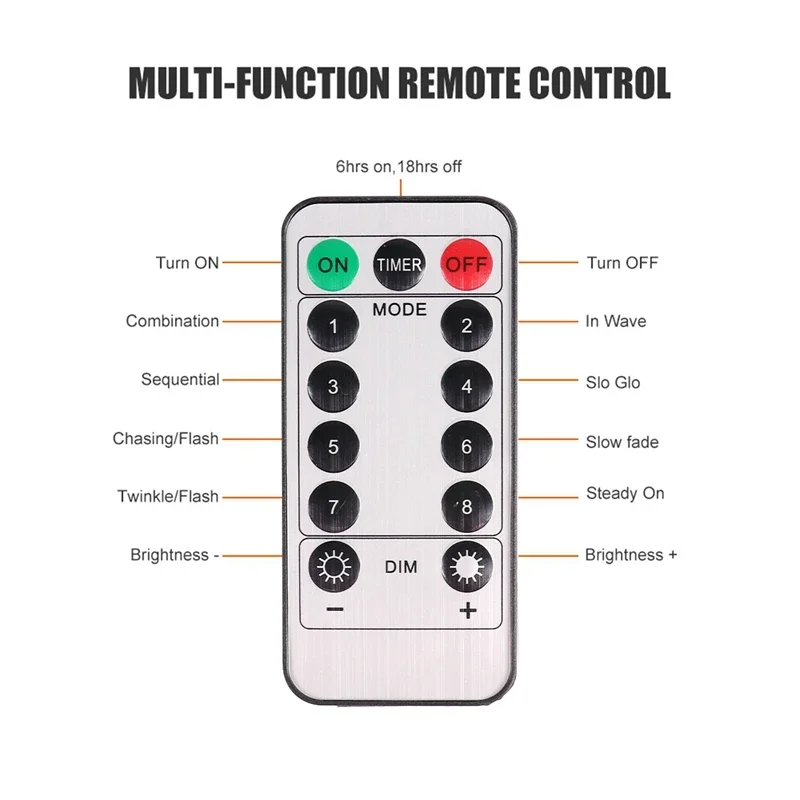 6. 8 Modes:Combination;In Waves;Sequential;Slow-glow;Chasing;Fade;Flash;Steady